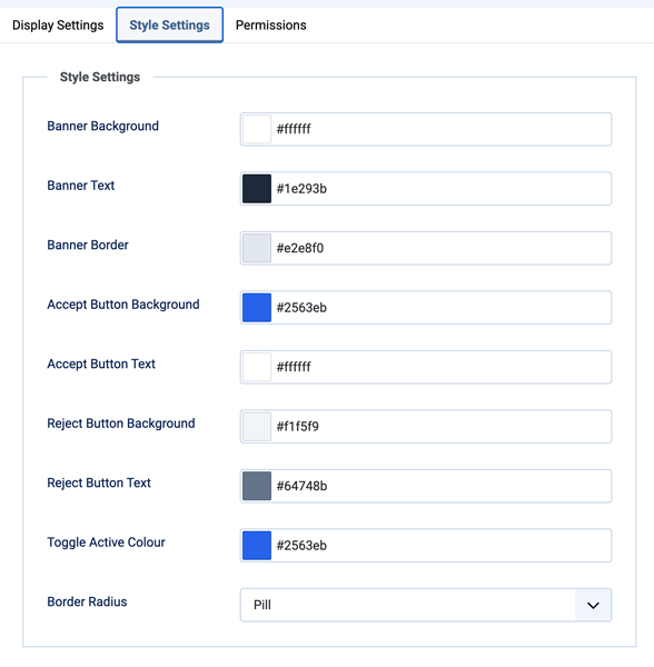 - Accept Button Background — background colour for the Accept / Accept All button.