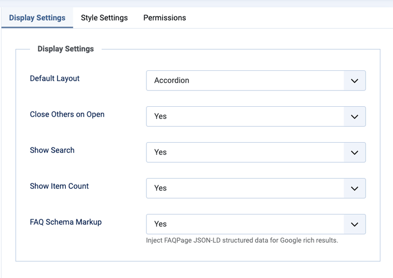 If you don’t want schema output (e.g. you’re using another SEO extension for structured data), set FAQ Schema Markup to No in the component options.